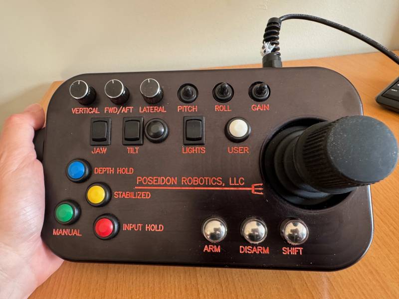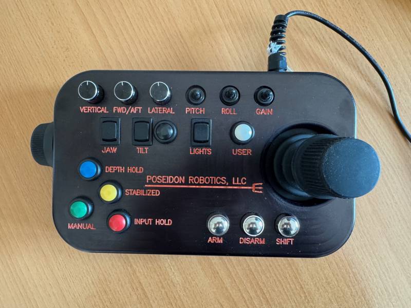 Le pupitre de commande de chez Poseidon Robotics reprend de manière intuitive l'ensemble des commandes permettant de piloter le BlueROV 2